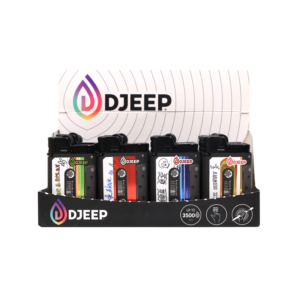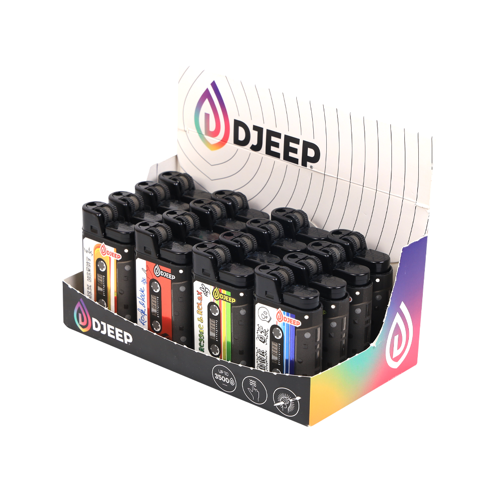 Djeep Lighter Discover the reliability and unique style of Djeep lighters. Known for their distinctive square shape and ergonomic design, Djeep lighters offer a comfortable grip and feature a large fuel tank for exceptionally long-lasting use compared to standard disposable lighters. Engineered for safety and performance, each lighter boasts a consistent flame and a child-resistant mechanism. Djeep combines high-quality construction with vibrant, eye-catching designs, making it more than just a lighter – it’s a statement piece. Choose Djeep for a premium, dependable, and stylish lighter experience.