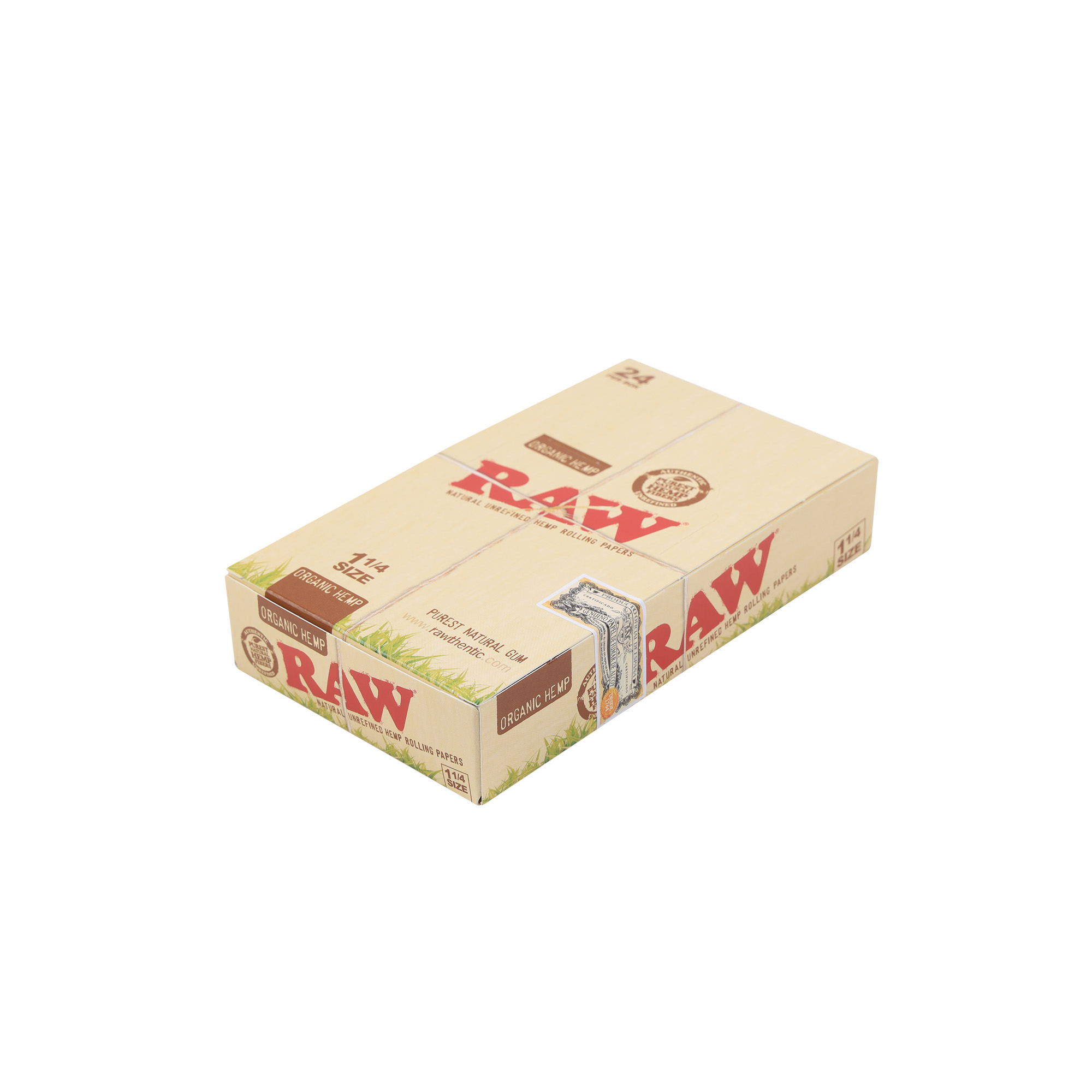 Discover RAW Organic Hemp 1 1/4 Rolling Papers, presented in a convenient display box containing 24 booklets. Crafted from 100% organic, unrefined, and unbleached hemp, these ultra-thin papers ensure a pure, clean taste. Each paper features RAW’s patented Criss-Cross watermark and natural acacia gum, guaranteeing an exceptionally slow, even, and consistent burn for a superior hand-rolling experience. With 50 leaves per booklet, you get a total of 1200 natural rolling leaves.